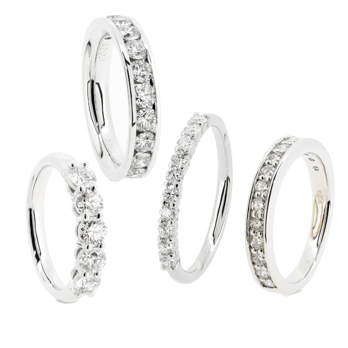 ピンキーリング、鑑定書付きのハーフエタニティリング、フルエタニティリングなど